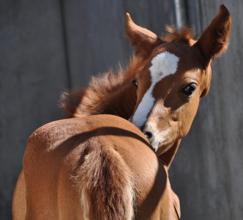Rheinisch gebrannter Fuchs * 2010, vom Starvererber Belissimo, erstes Fohlen unserer Simply the best von Sir Donnerhall. In der weiteren Aufzucht und auch später konnte er mit Sorentino, der an die Tochter des Käufers ging, zusammenbleiben!
