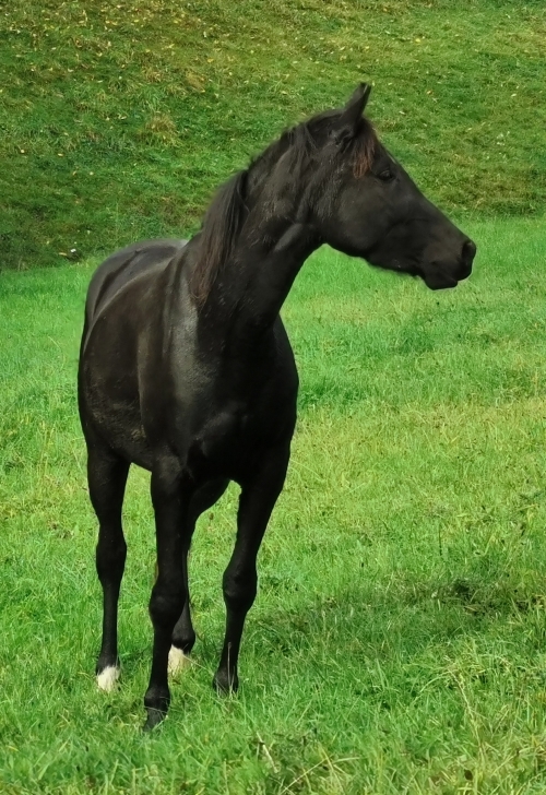 5-jährig hat Kaly die SLP gemacht und wurde anschließend als Verbandsprämienstute ins Oldenburger Stutbuch eingetragen. Darüber freuen wir uns sehr! Anfang Juni 2024 hat Kaly ihr erstes Fohlen ganz unproblematisch zur Welt gebracht, ein typvolles Rapphengstfohlen mit sehr guten Gängen, Banksy.